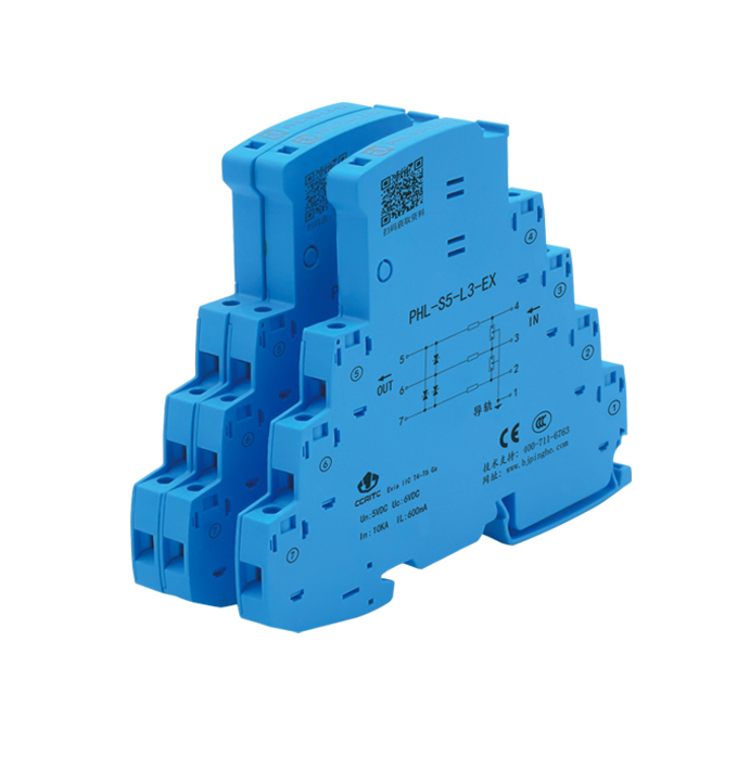PHL-S系列SPD主要用于保护以二线制、三线制方式连接的变送器、开关、频率信号、通信设备、热电阻、热电偶等现场设备以及控制室I/O、DCS、PLC等设备,使其免受雷击电涌冲击电压或操作过电压的损害。主要特点有: 1.顶部具有状态报警显示功能; 2.7mm超薄,节省空间; 3.高带宽,插入损耗低,适用于各类信号;