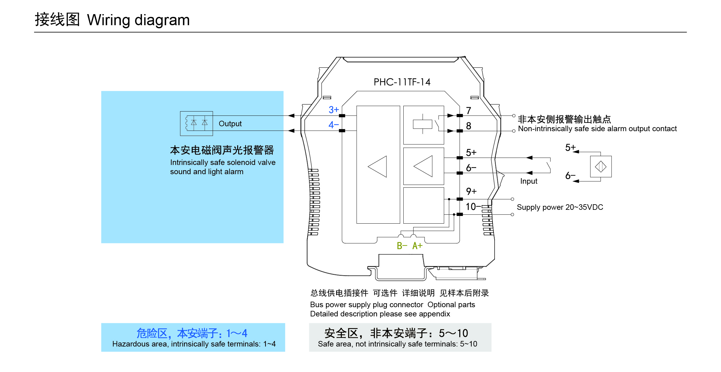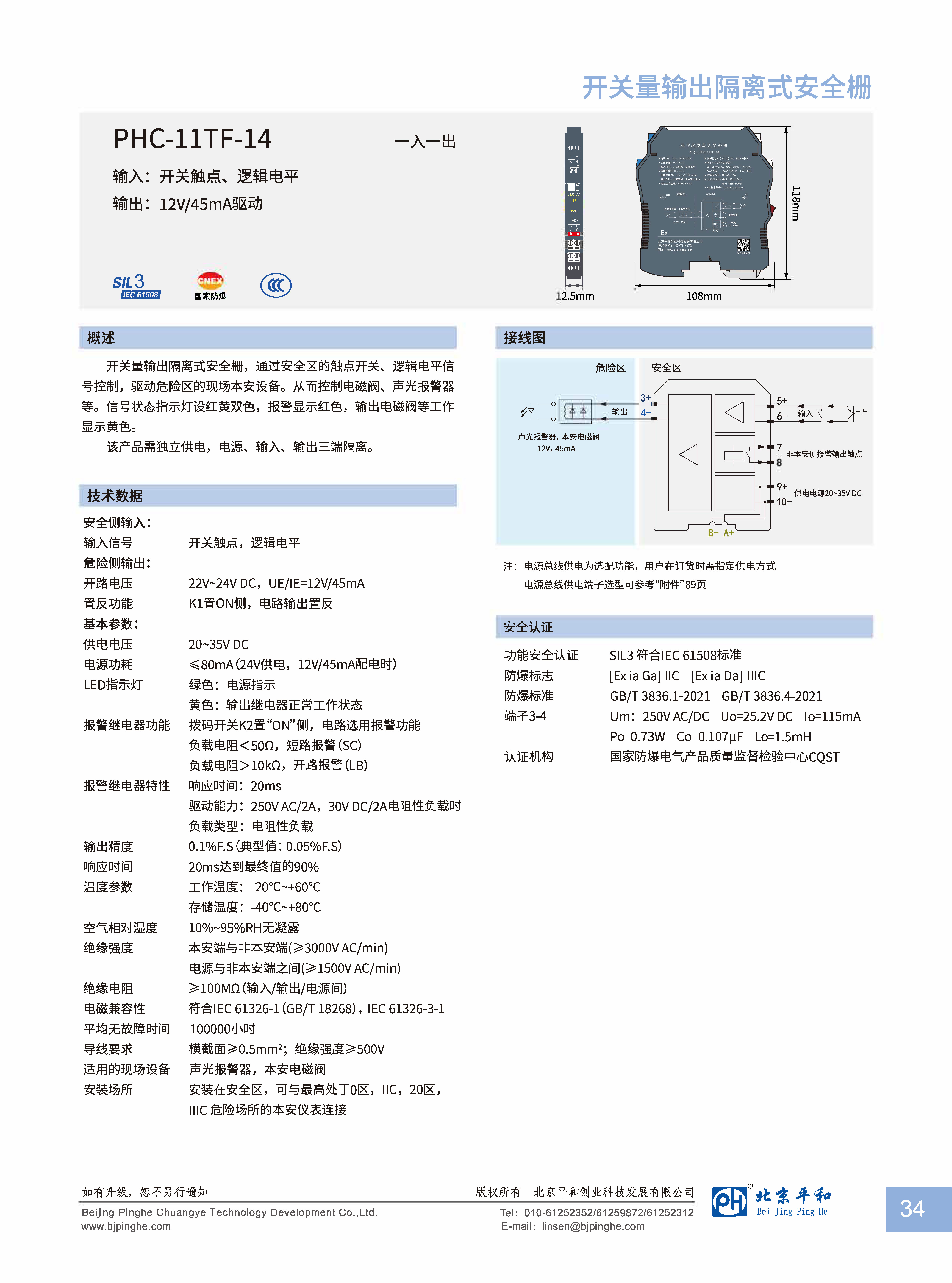 认证参数(端子3-4之间) Um=250V Uo=28V Io=119mA Co=0.05uF Lo=2.1mH Po=0.83W
