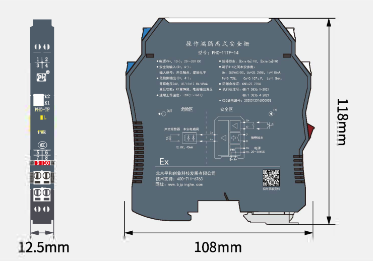 外形尺寸 厚12.5mm×宽108mm×高118mm