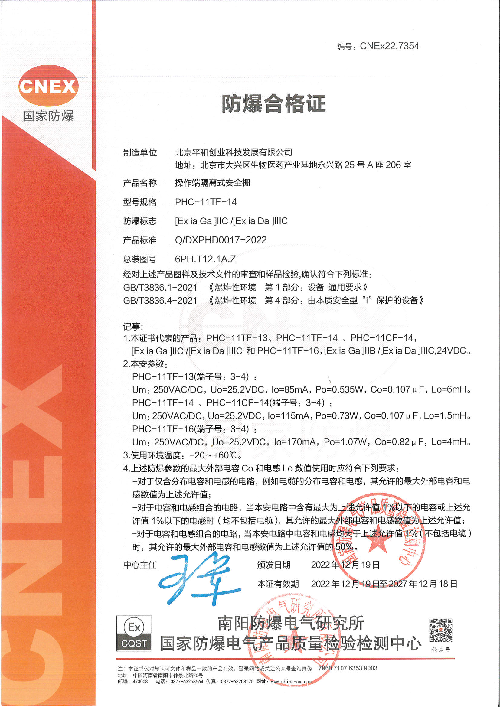 认证机构 国家防爆电气产品质量监督检验中心CQST认证