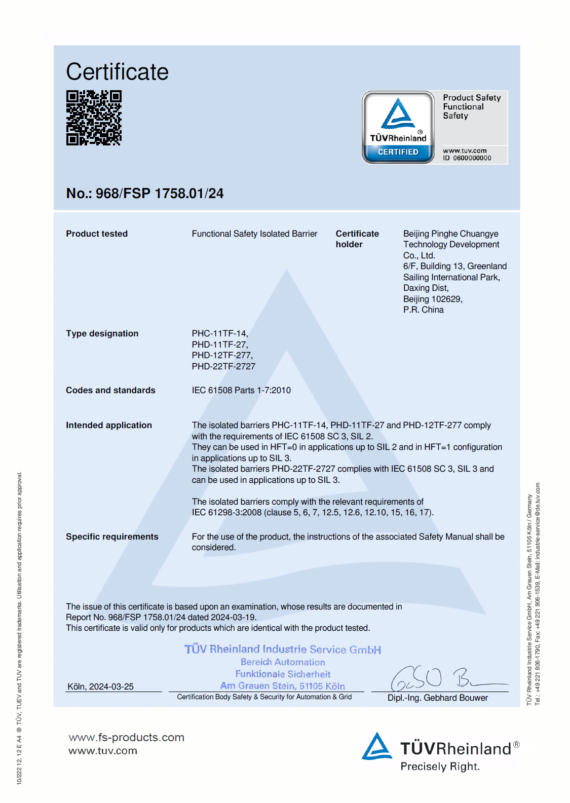 功能安全认证 SIL2,符合IEC 61508 EN 61511标准