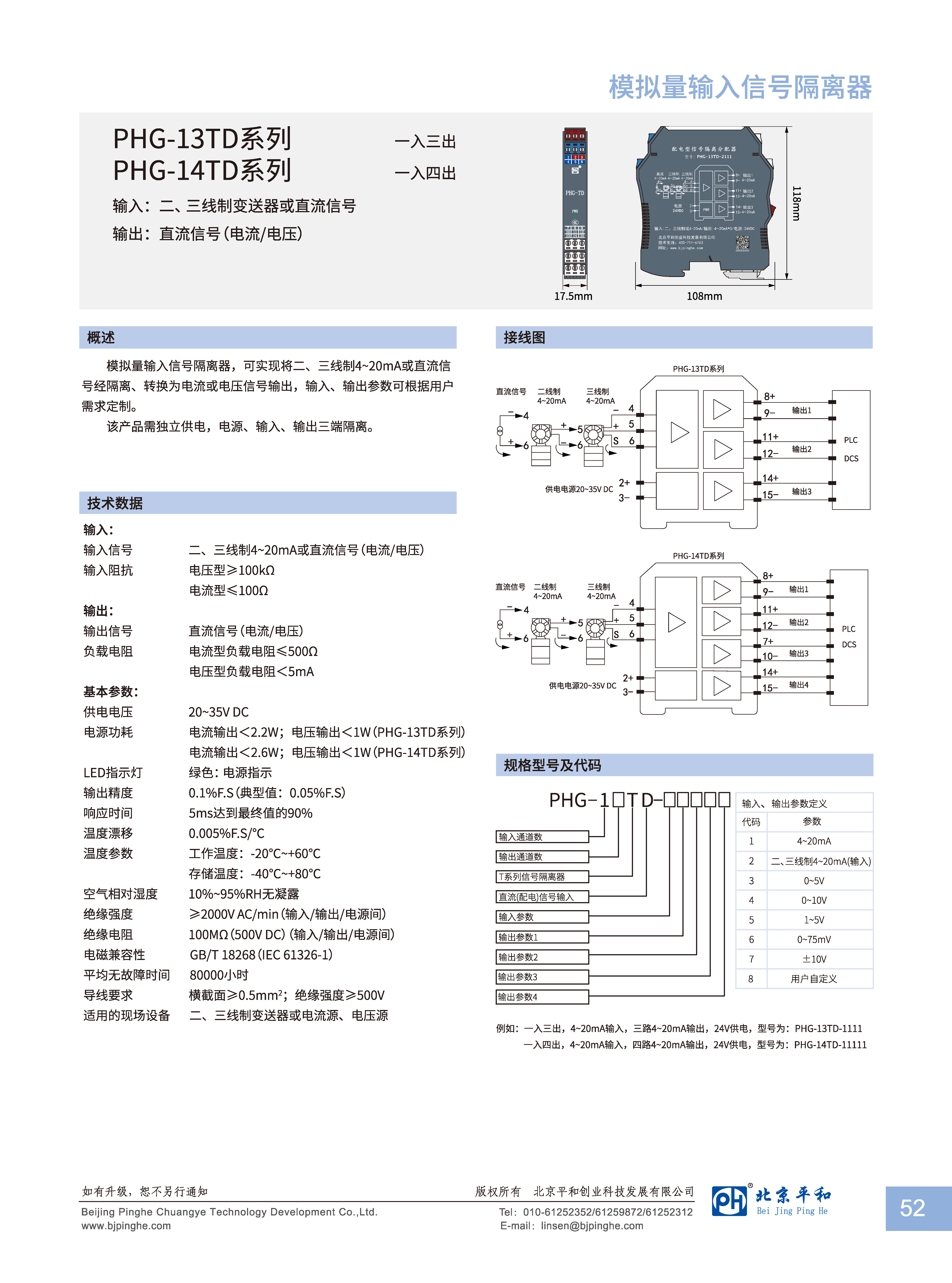 模拟量输入信号隔离器,可实现将二、三线制4~20mA或直流信号经隔离、转换为电流或电压信号输出,输入、输出参数可根据用户需求定制。