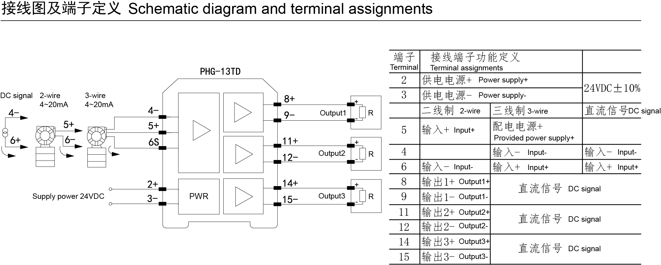 输入: 二、三线制变送器或直流信号