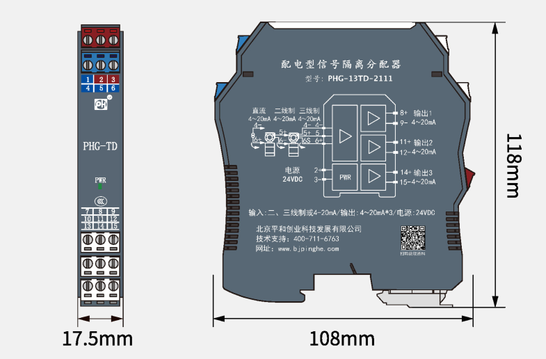 模拟量输入信号隔离器,可实现将二、三线制4~20mA或直流信号经隔离、转换为电流或电压信号输出,输入、输出参数可根据用户需求定制。