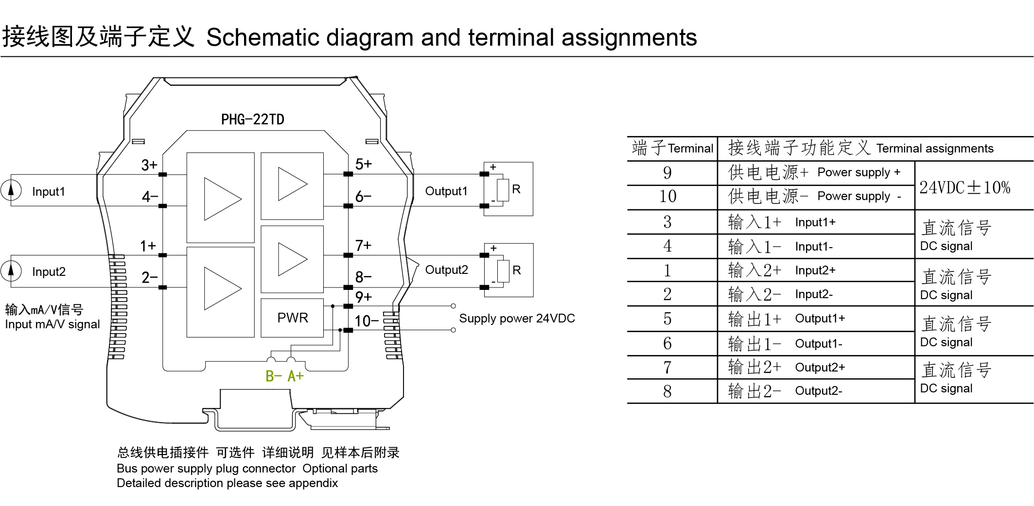 PHG-22TD系列模拟量输入信号隔离器,可实现将电流或电压信号经隔离、转换为电流或电压信号输出,输入、输出参数可根据用户需求定制。