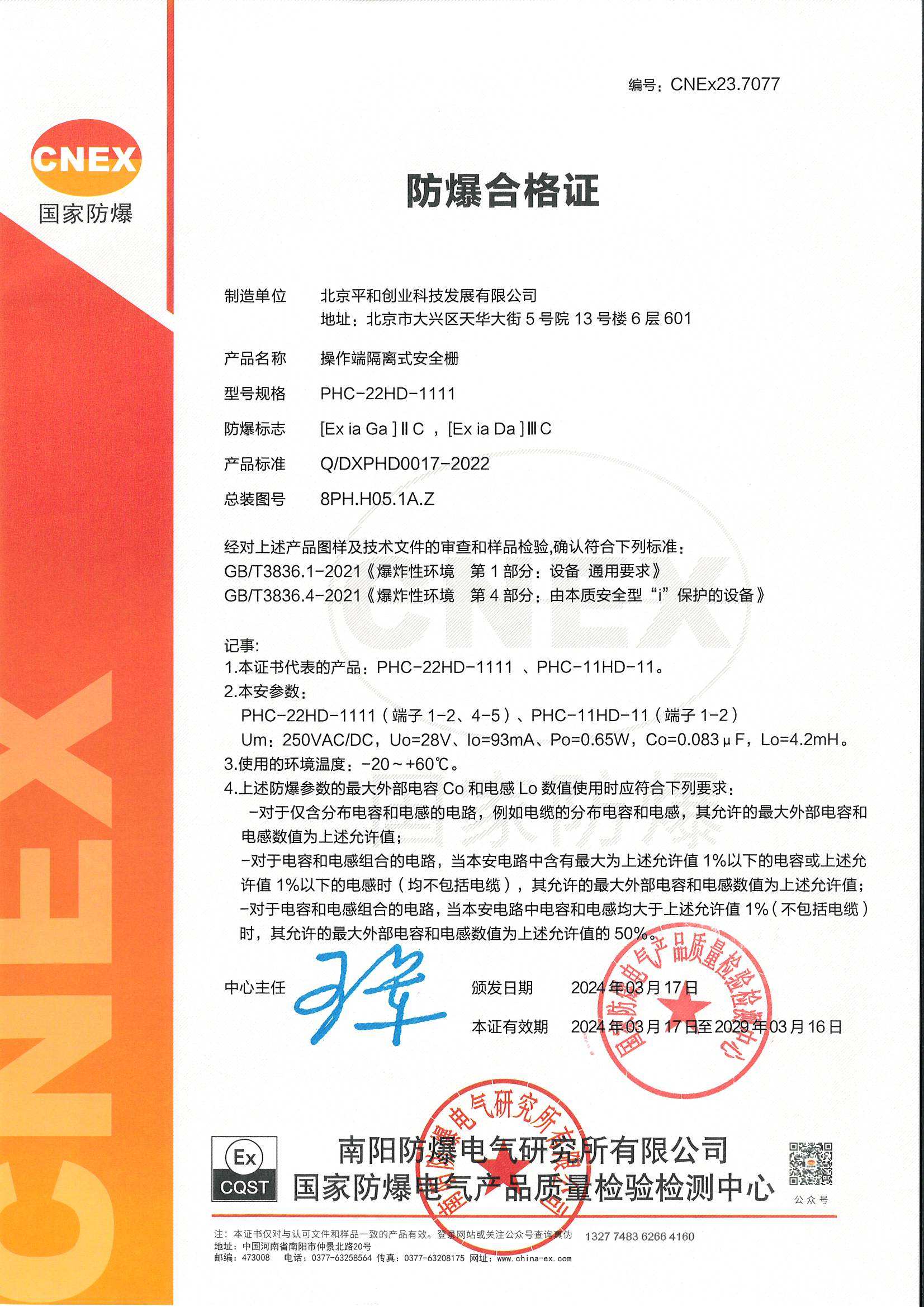认证机构 | 国家防爆电气产品质量监督检验中心CQST认证 |