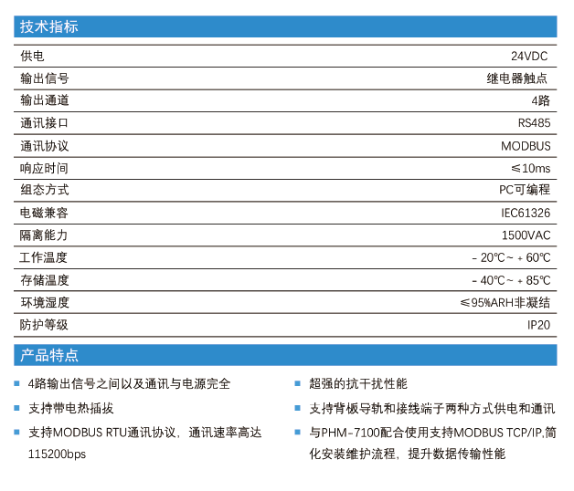 电源、通讯、输入之间全隔离设计保证了产品的可靠性和信号采集的稳定、抗干扰等性能,完善的隔离设计理念非常适合工业现场的复杂工况,长期稳定性好。