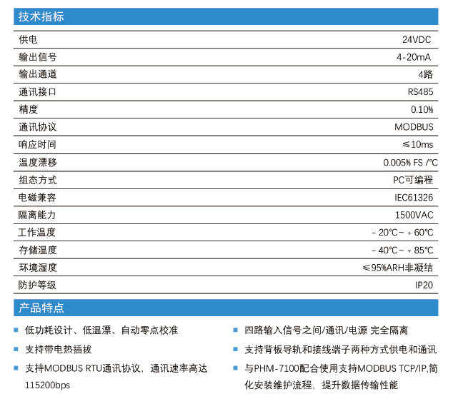 电源、通讯、输入之间全隔离设计保证了产品的可靠性和信号采集的稳定、抗干扰等性能,完善的隔离设计理念非常适合工业现场的复杂工况,长期稳定性好。和传统的PLC+隔离器的输出模式比较;减少了两次转换误差。