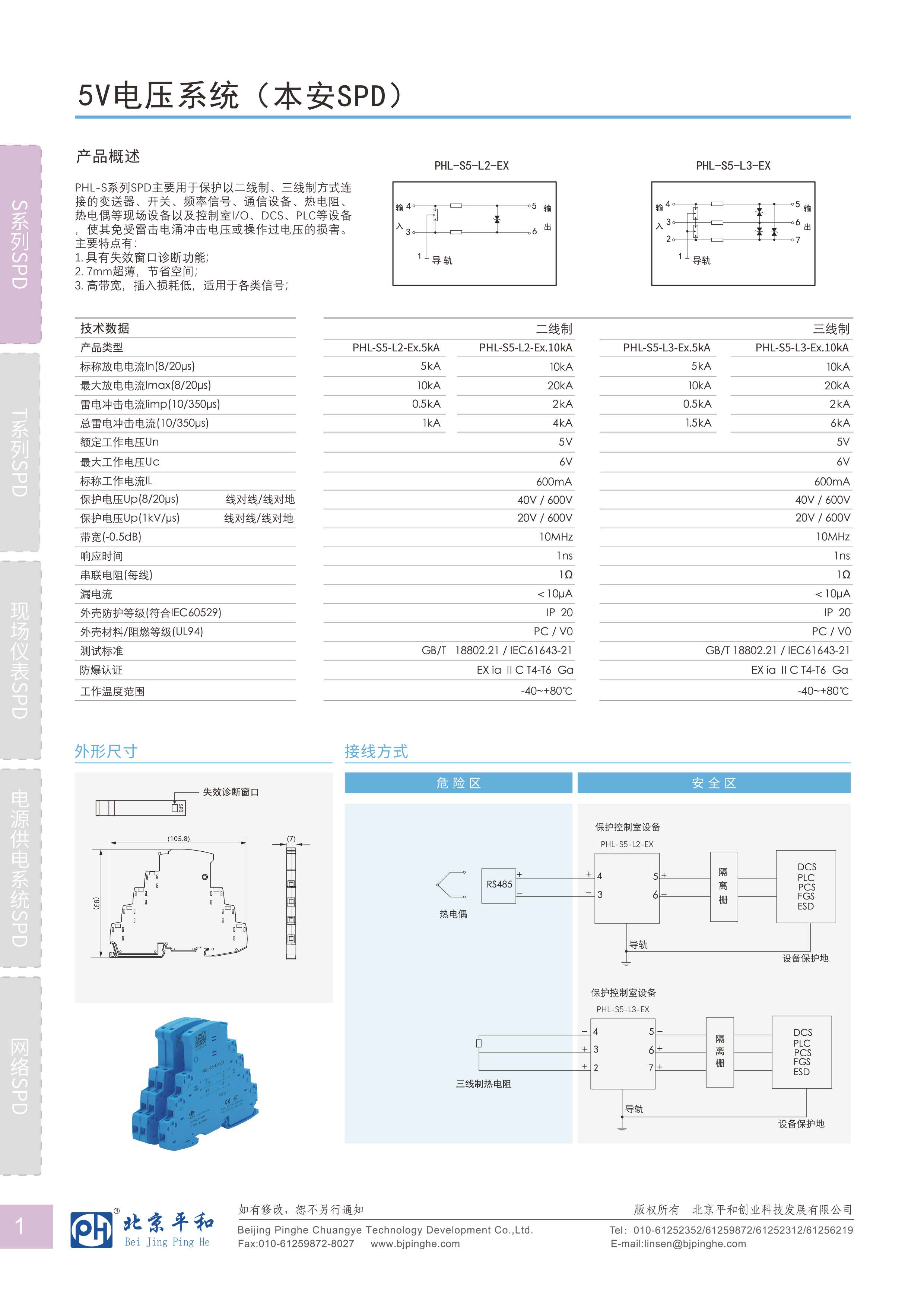 PHL-S系列SPD主要用于?;ひ远咧啤⑷咧品绞搅拥谋渌推鳌⒖亍⑵德市藕?、通信设备、热电阻、热电偶等现场设备以及控制室I/O、DCS、PLC等设备,使其免受雷击电涌冲击电压或操作过电压的损害。主要特点有: