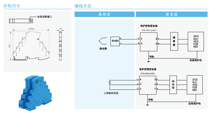 PHL-S系列SPD主要用于保护以二线制、三线制方式连接的变送器、开关、频率信号、通信设备、热电阻、热电偶等现场设备以及控制室I/O、DCS、PLC等设备,使其免受雷击电涌冲击电压或操作过电压的损害。主要特点有: