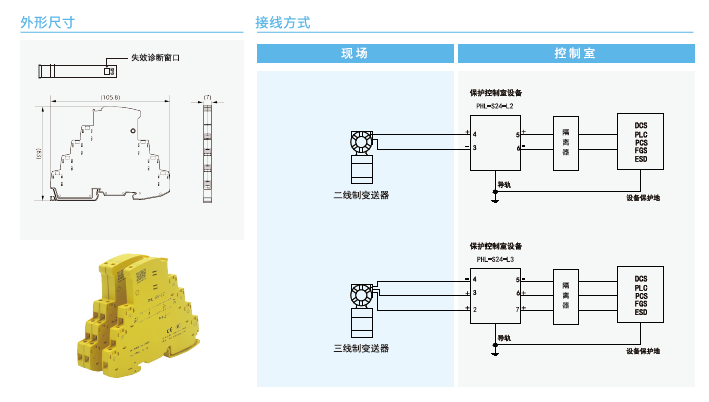 PHL-S系列SPD主要用于保护以二线制、三线制方式连接的变送器、开关、频率信号、通信设备、热电阻、热电偶等现场设备以及控制室I/O、DCS、PLC等设备,使其免受雷击电涌冲击电压或操作过电压的损害。主要特点有: