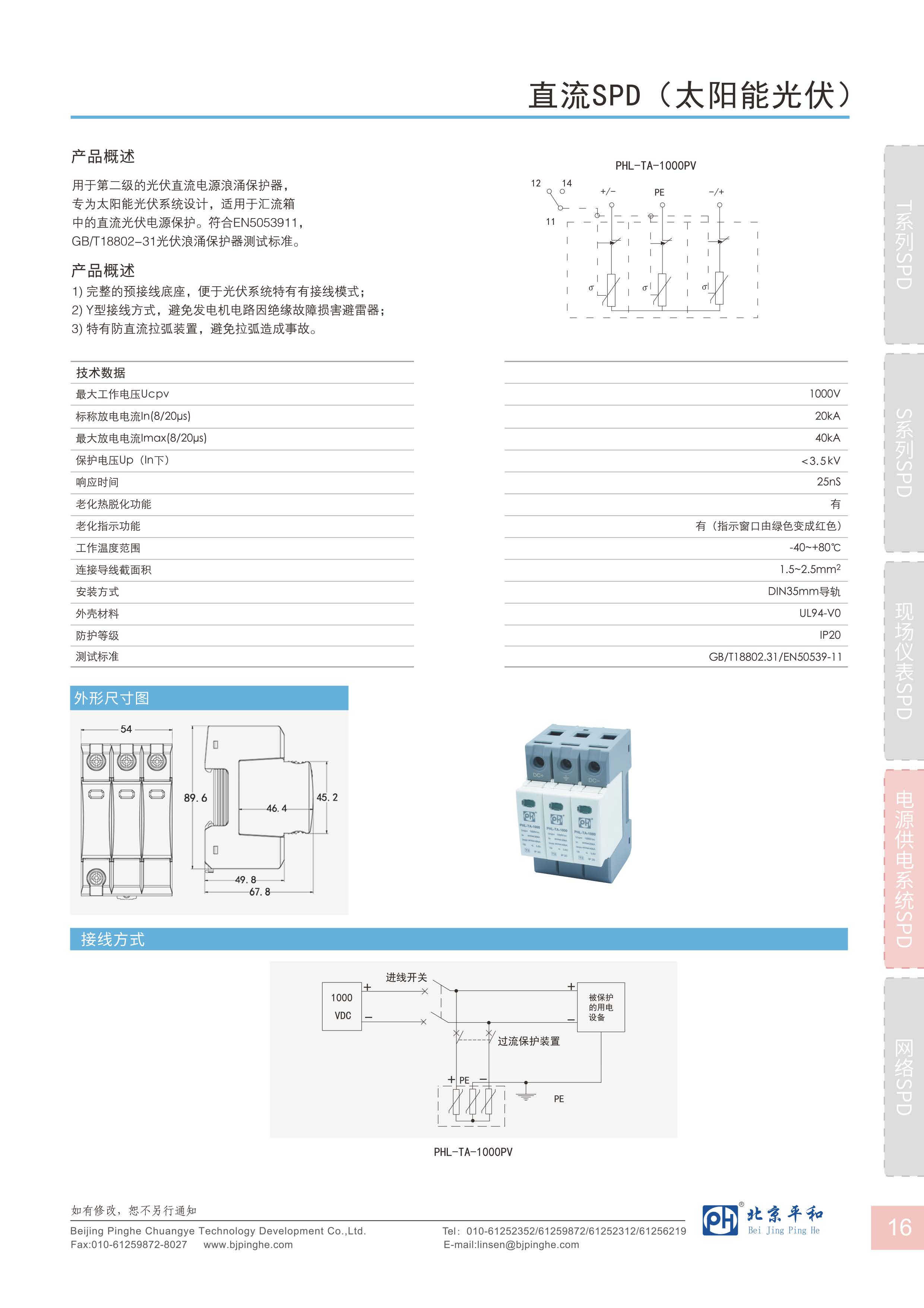 符合EN5053911,GB/T18802-31光伏浪涌保护器测试标准。