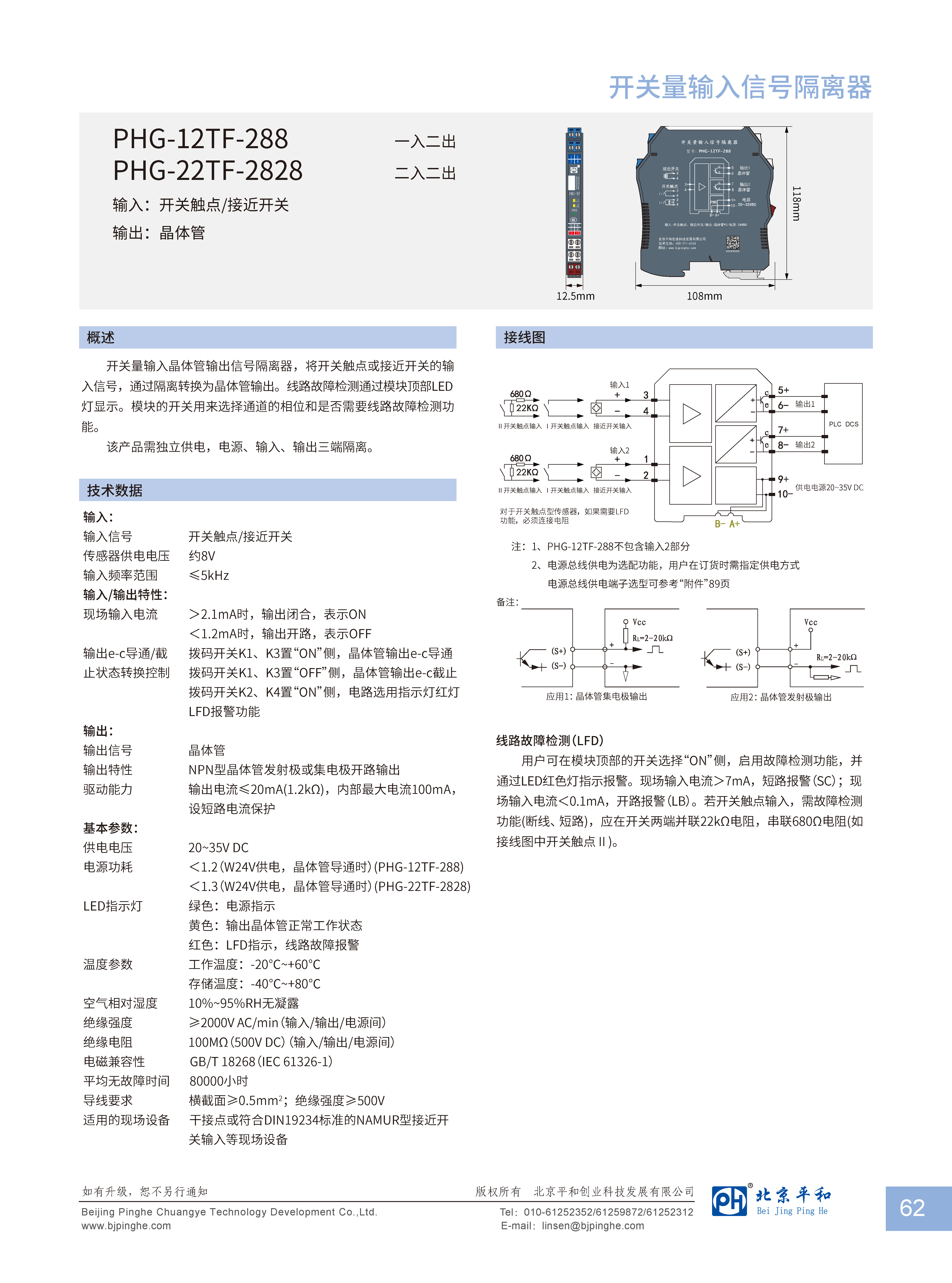 开关量输入晶体管输出信号隔离器,将开关触点或接近开关的输入信号,通过隔离转换成晶体管输出。线路故障检测功能在模块顶部LED灯显示。模块的开关用来选择通道的相位和是否需要线路故障检测功能。