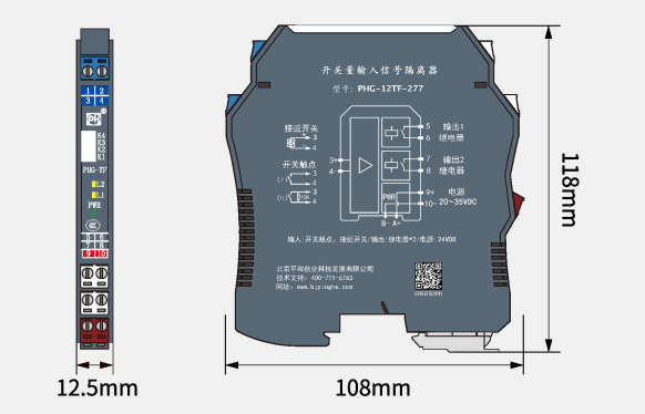 开关量输入继电器输出信号隔离器, 将开关触点或接近开关的输入信号, 通过隔离转换为继电器输出。线路故障检测通过单独的继电器输出,并在??槎ゲ縇ED灯显示。??榈目赜美囱≡裢ǖ赖南辔缓褪欠裥枰呗饭收霞觳夤δ堋?/span>