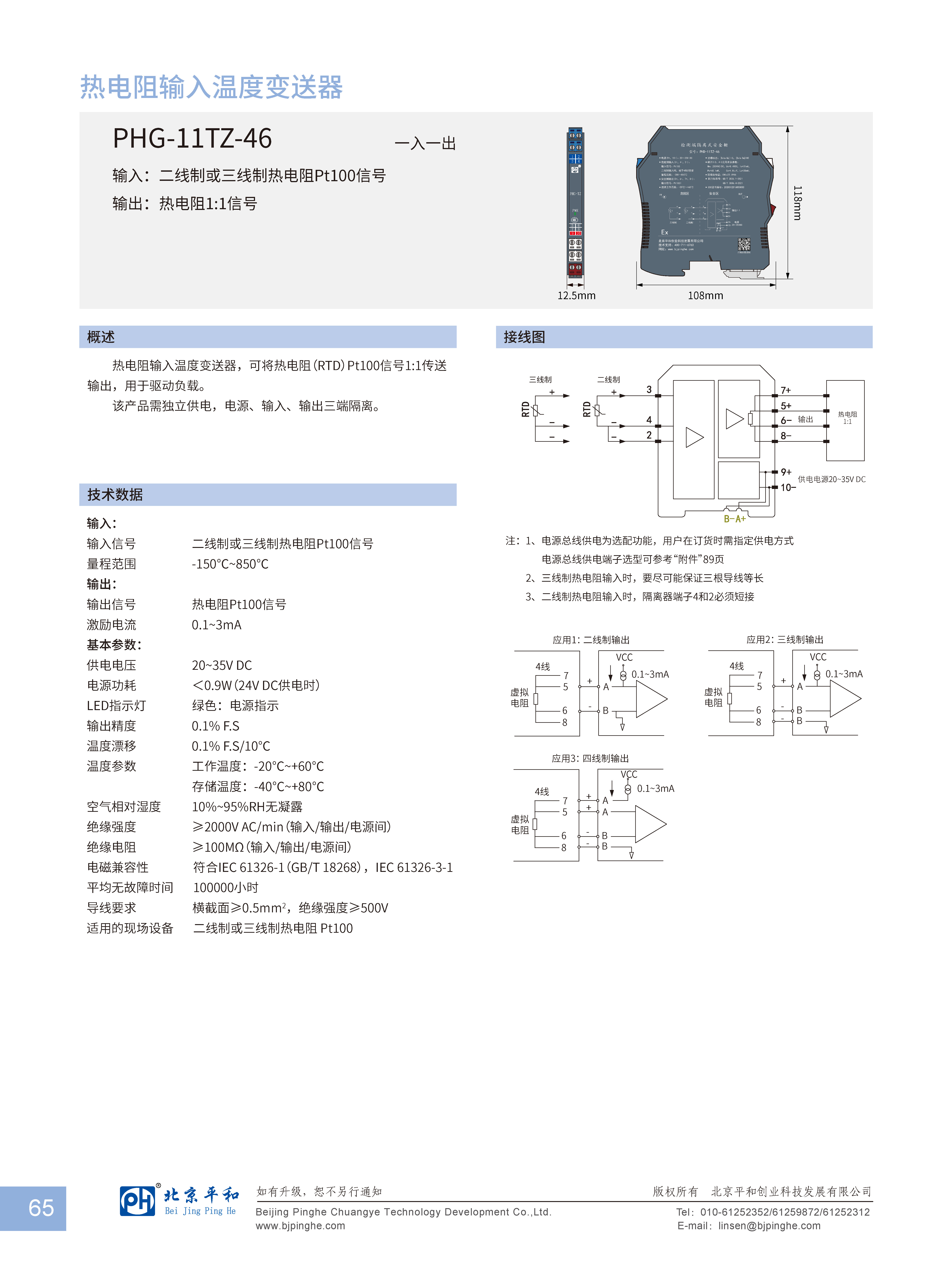 热电阻输入温度变送器,可将热电阻(RTD)Pt100信号1:1传送送输出,用于驱动负载。