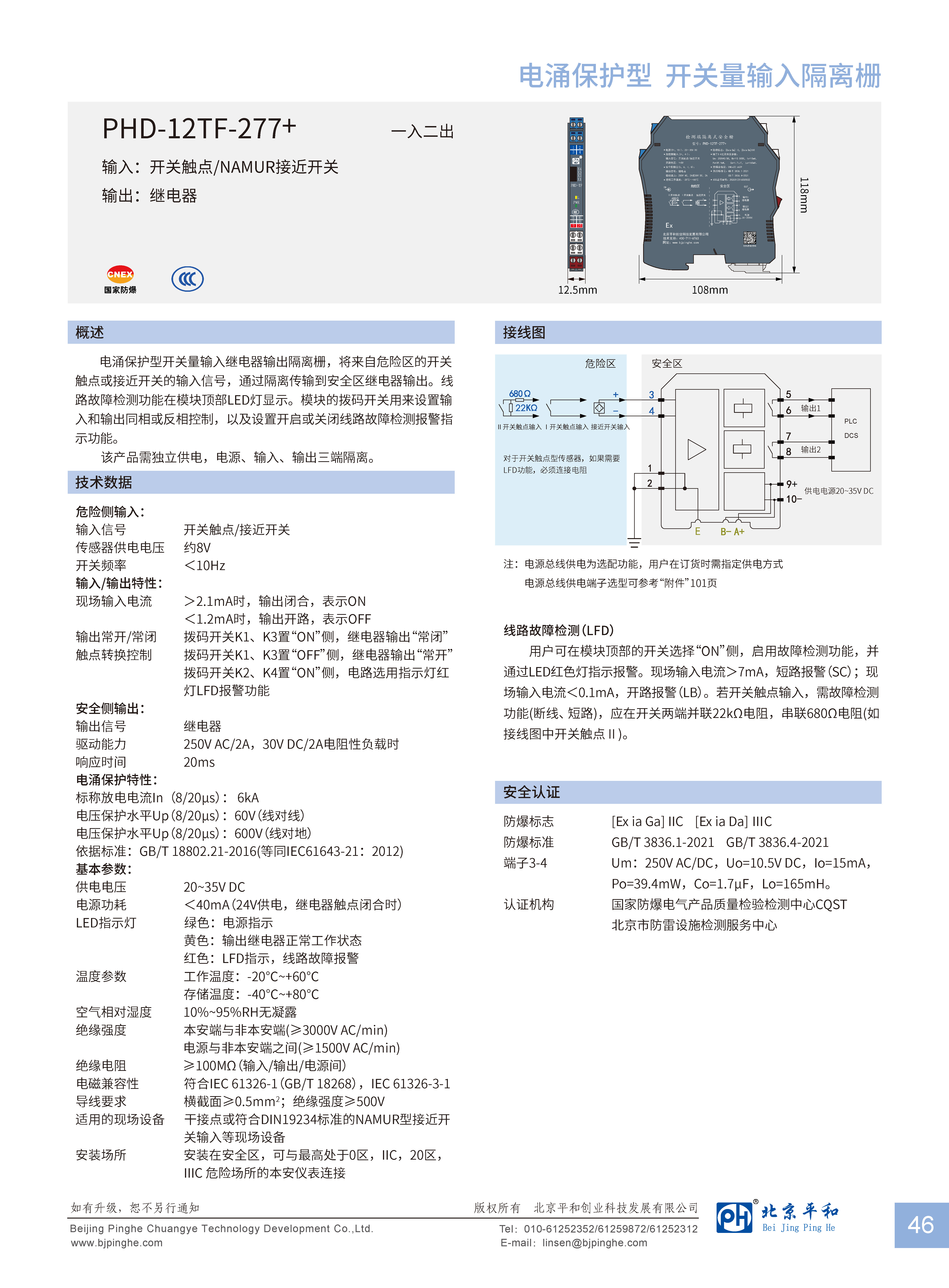电涌?;ば涂亓渴淙爰痰缙魇涑龈衾胝?将来自危险区的开关触点或接近开关的输入信号,通过隔离传输到安全区继电器输出。线路故障检测功能在模块顶部LED灯显示。??榈牟β肟赜美瓷柚檬淙牒褪涑鐾嗷蚍聪嗫刂?,以及设置开启或关闭线路故障检测报警指示功能。