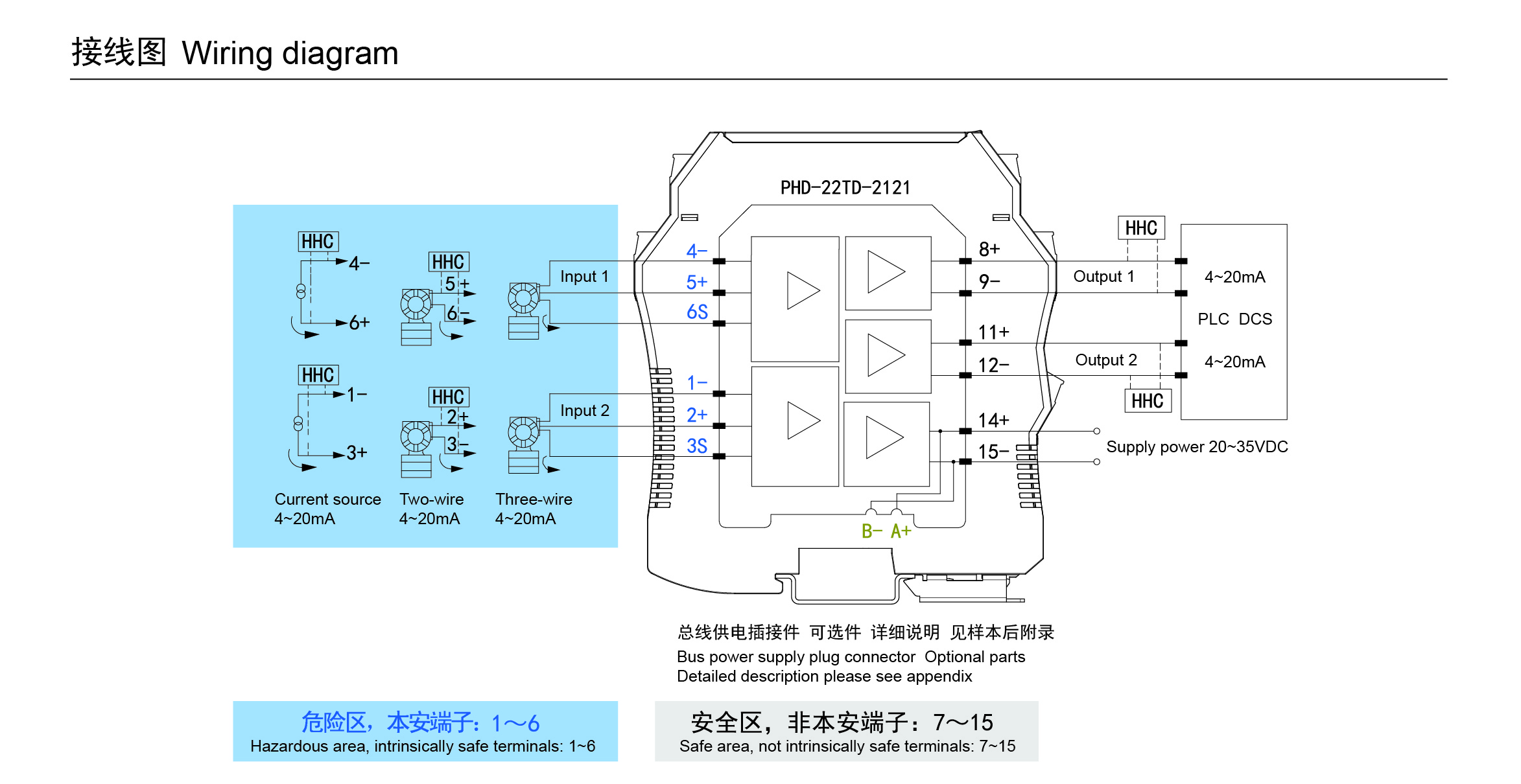 二、三线制变送器或电流源(HART)输入