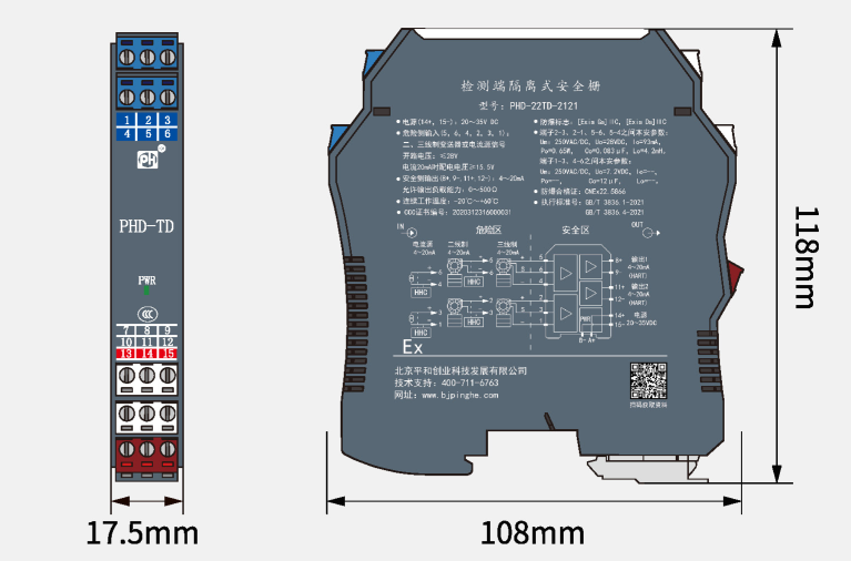认证参数(端子3-4之间) Um=250V Uo=28V Io=93mA  Co=0.05uF Lo=2.4mH Po=0.65W