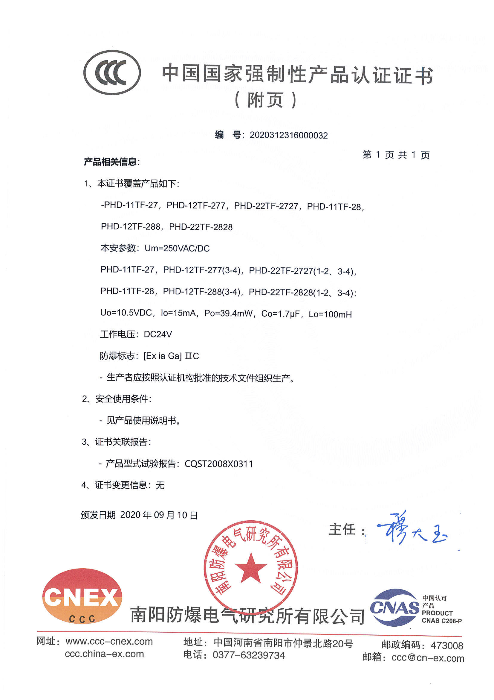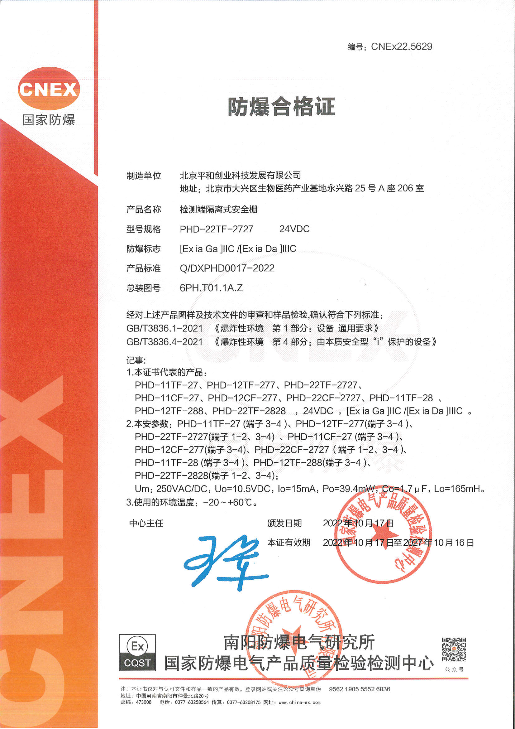 认证机构 | 国家防爆电气产品质量监督检验中心CQST认证 |