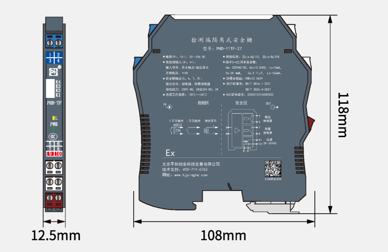 外形尺寸 | 厚12.5mm×宽108mm×高118mm |