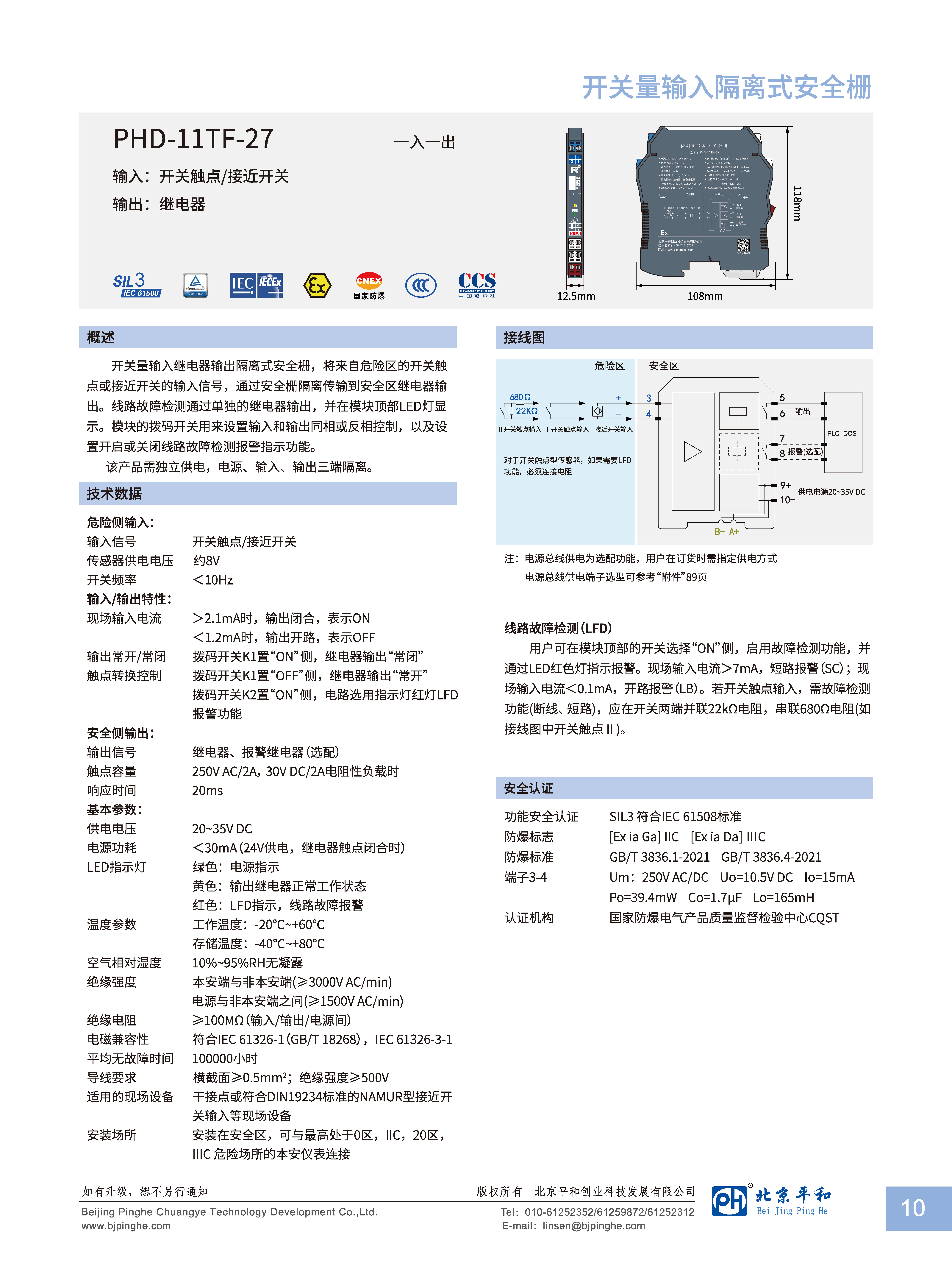 认证参数(端子3-4)之间 | Um=250V Uo=10.5V Io=15mA Co=1.7uF Lo=150mH Po=39.4mW |