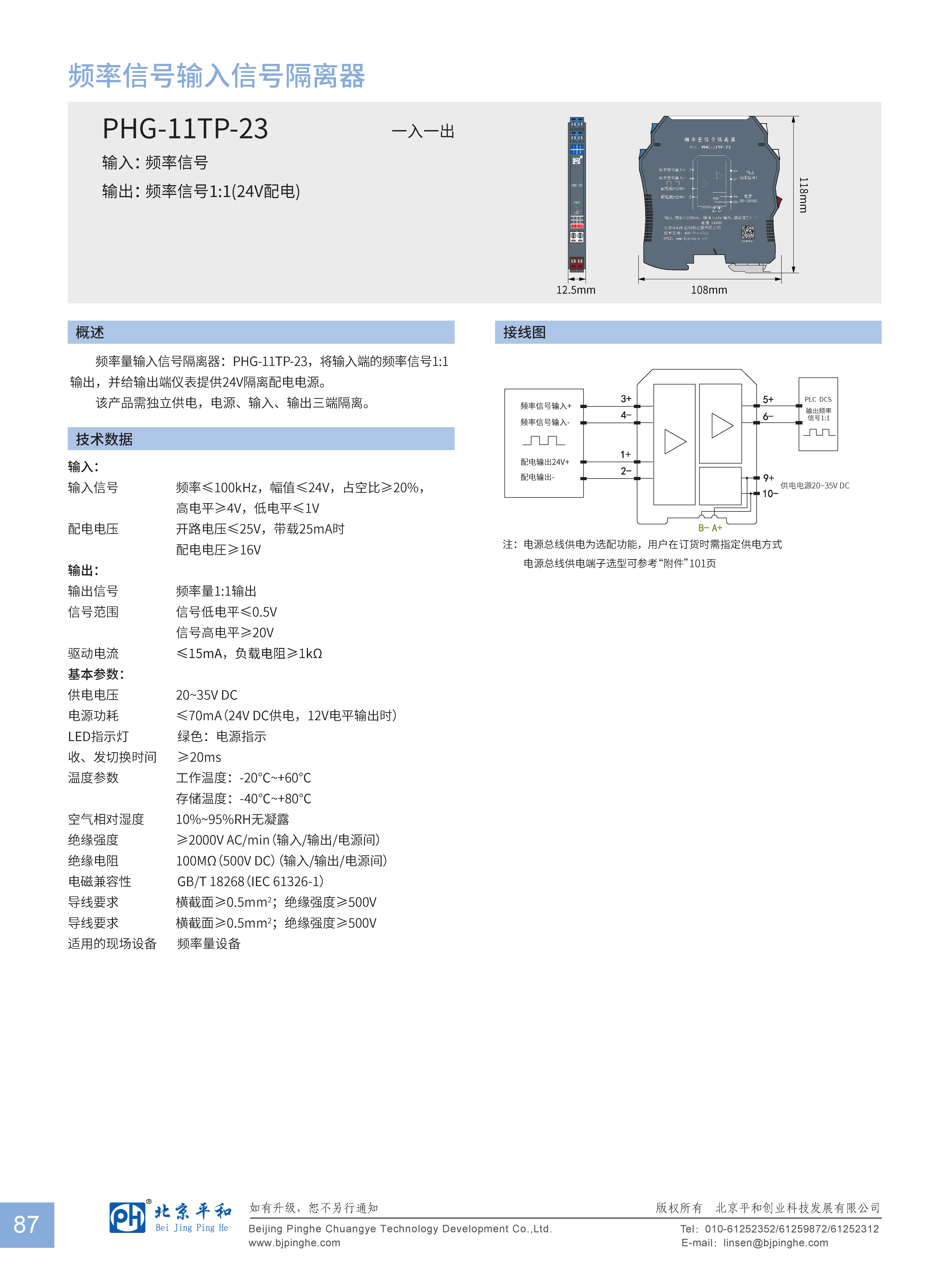 频率量输入信号隔离器:PHG-12TP系列,将输入端的频率信号根据用户设定的量程线性转换成直流信号输出。