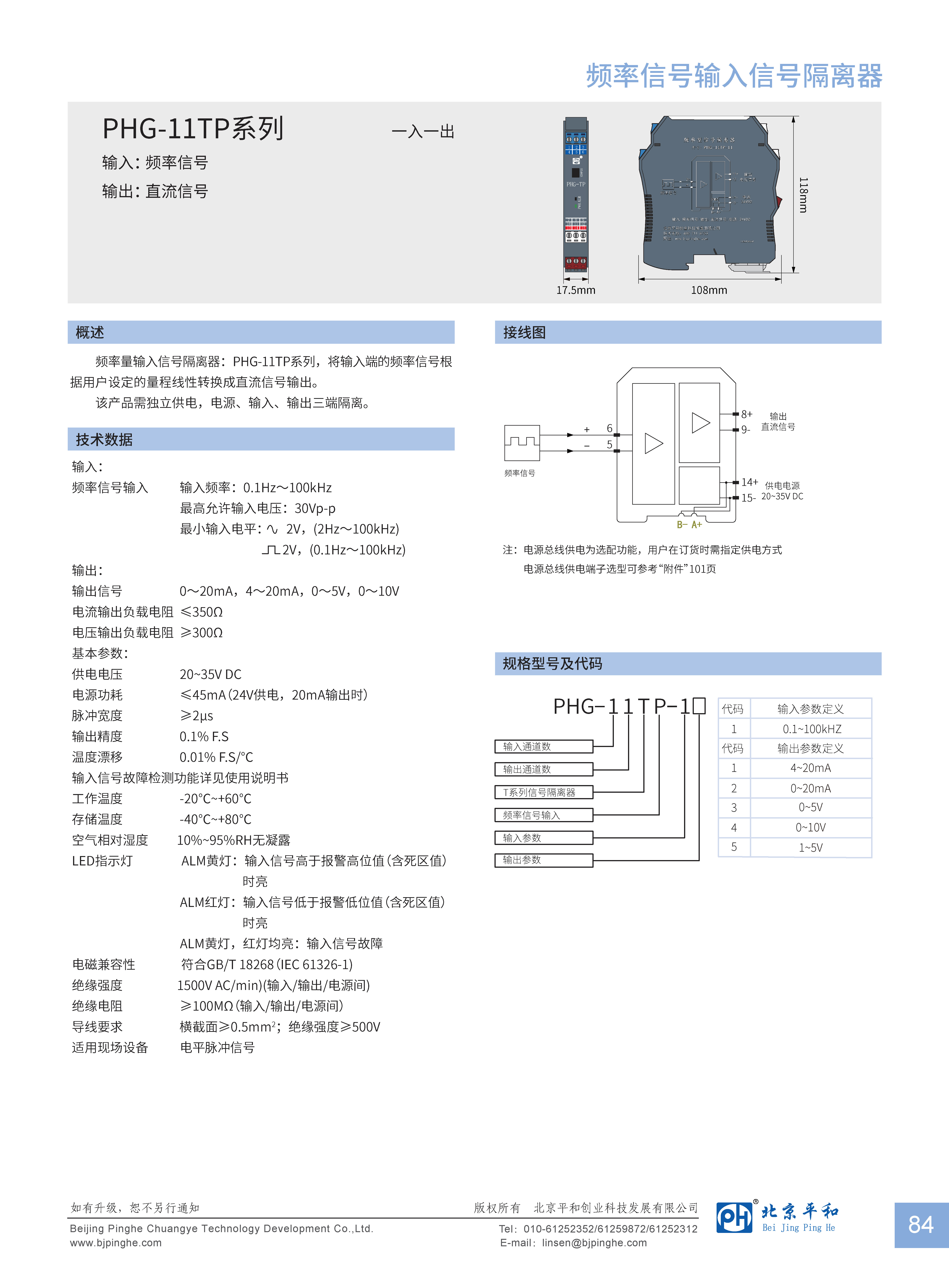 频率量输入信号隔离器:PHG-11TP系列,将输入端的频率信号根据用户设定的量程线性转换成直流信号输出。
