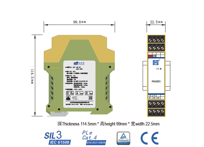 PH6001-1A是一款安全继电器控制模块,适用于安全开关、SIS系统中DO信号隔离转换,具有1路常开(NO)触点,预留端子方便实现快速的离线Proof Test测试,内部电路采用Fail-safe技术,3重冗余技术和触点熔接保护技术。