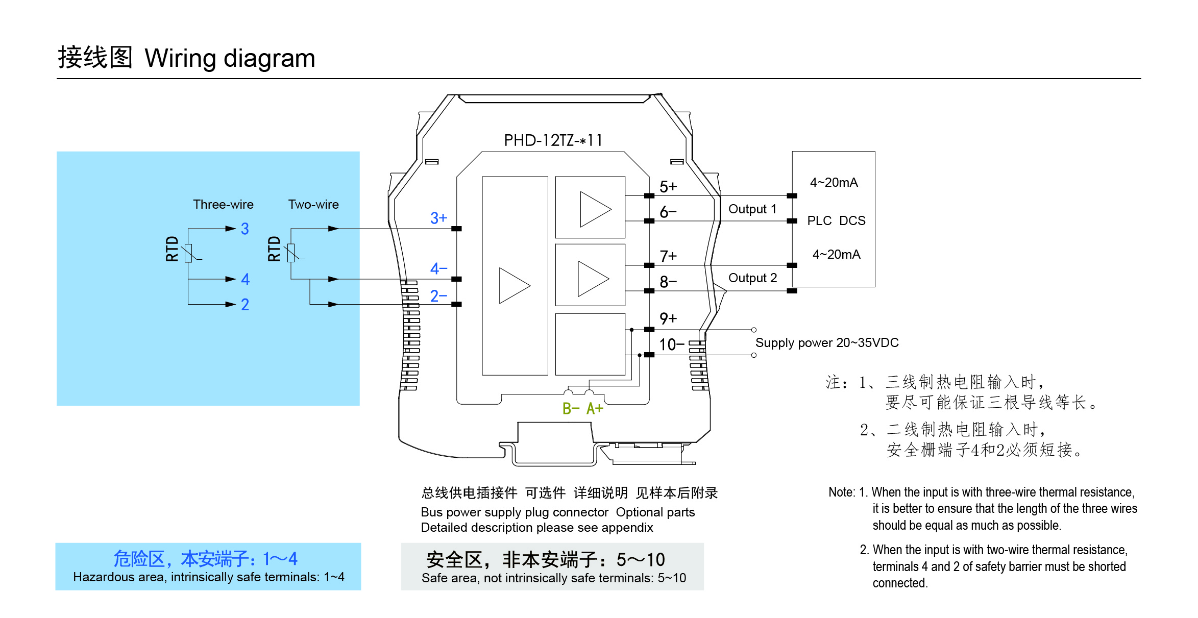 PHD-12TZ-X11 一入二出输入:二线制或三线制热电阻信号