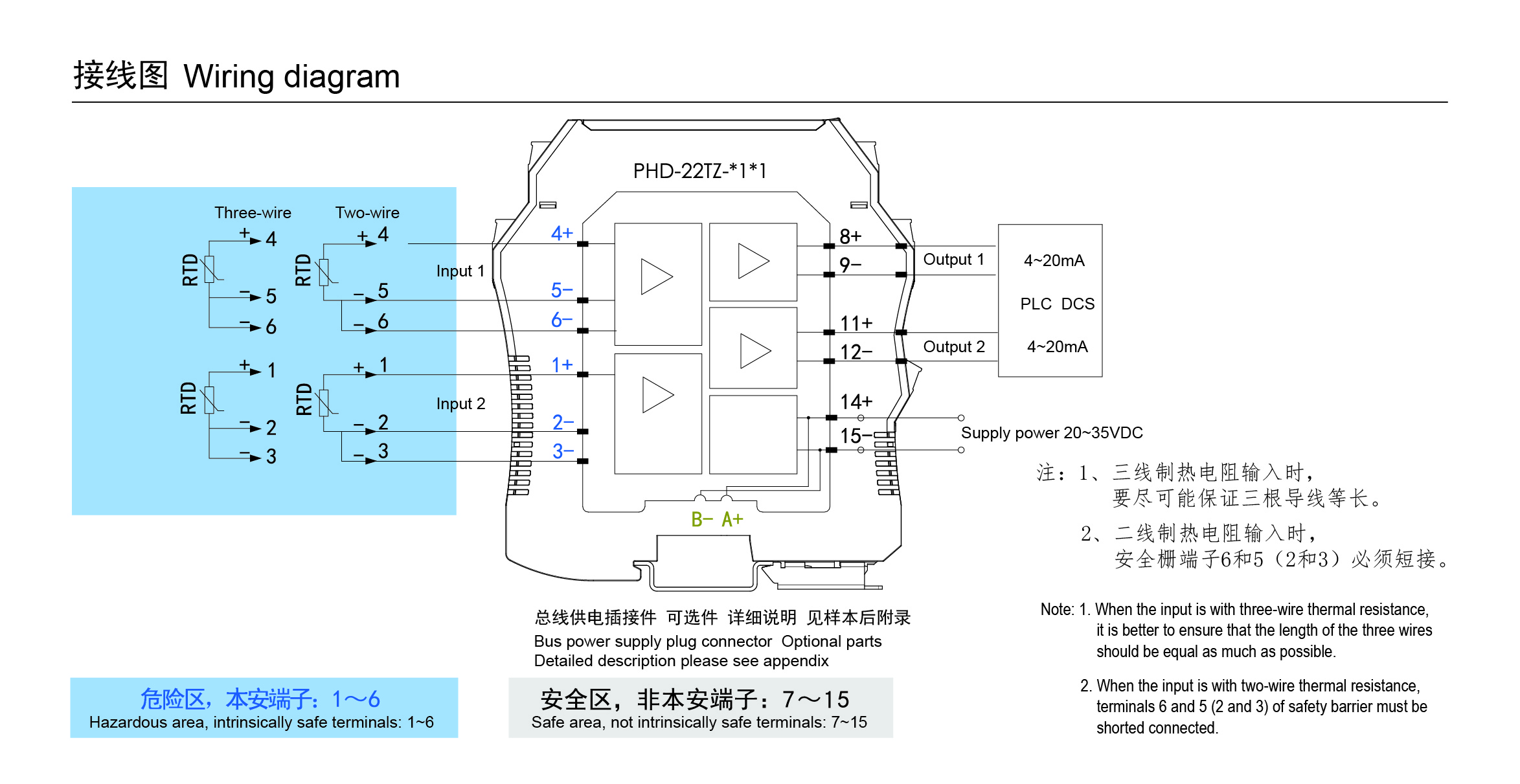 输入:二线制或三线制热电阻信号