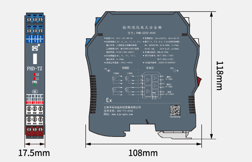 认证参数(端子4-5-6,1-2-3之间) | Um=250V Uo=8.4V Io=31mA Co=4.8μF Lo=20mH Po=65mW |
