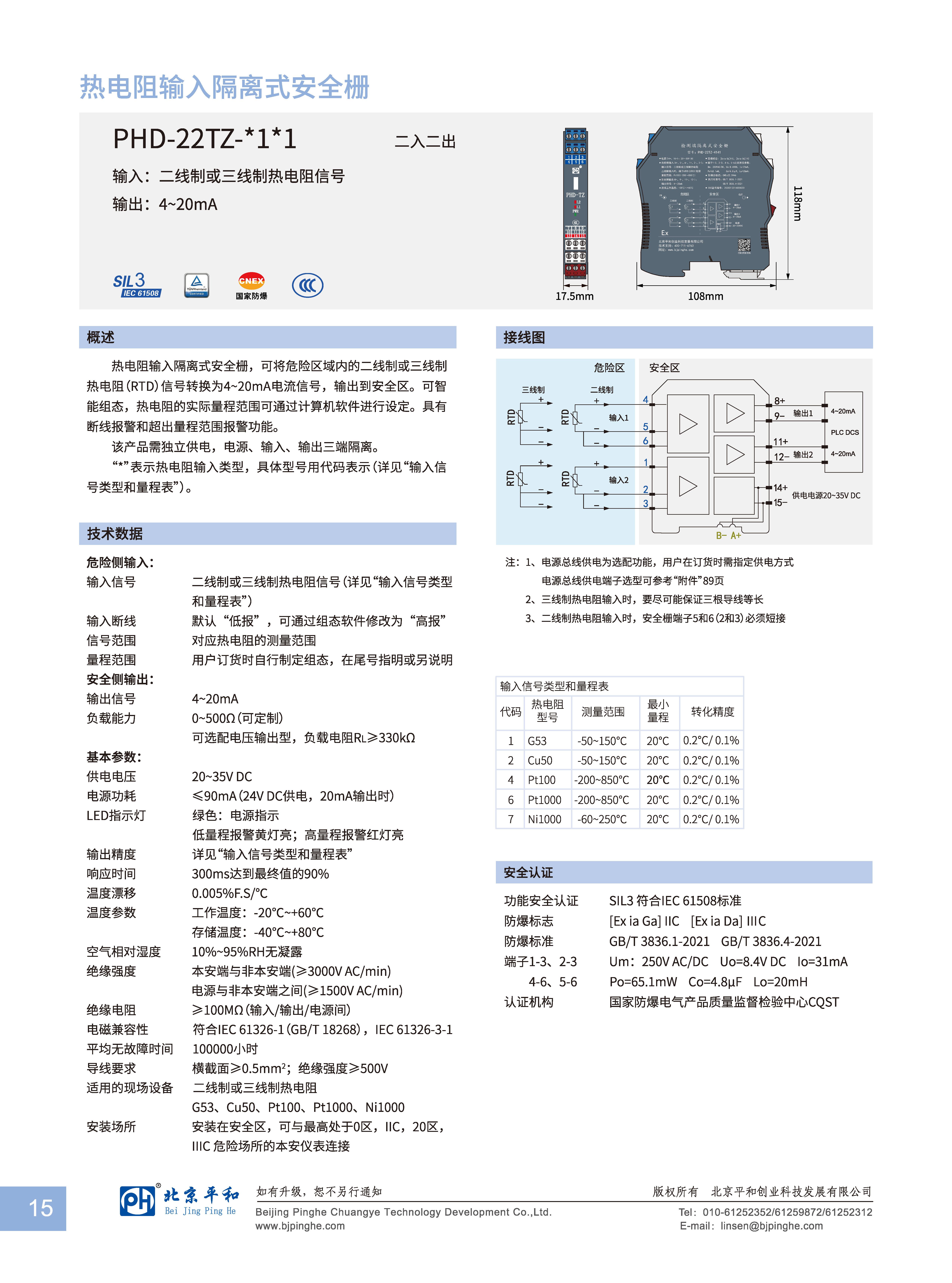 适用的现场设备 | 二线或三线热电阻G53、Cu50、Pt100、Pt1000、Ni1000 |