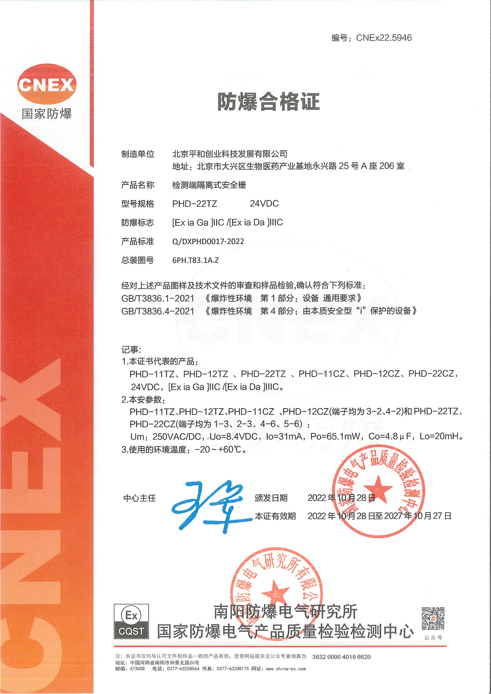 认证机构 | 国家防爆电气产品质量监督检验中心CQST认证 |