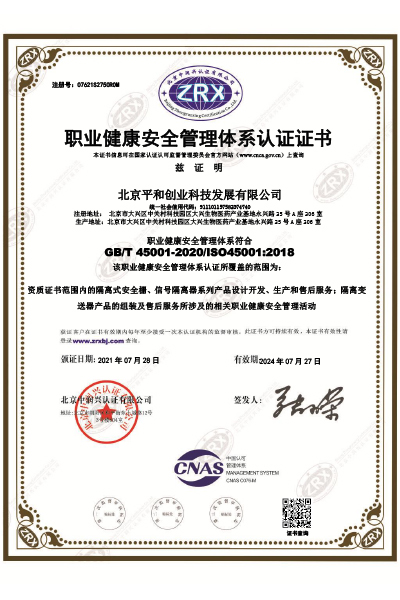 Сертификат системы менеджмента профессиональной безопасности и здоровья