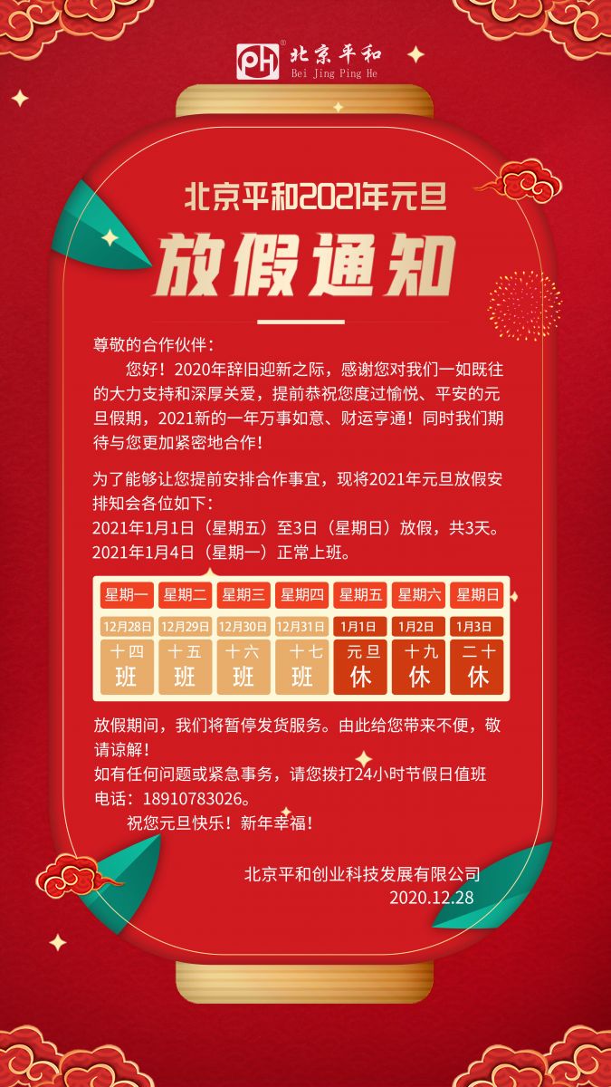 北京平和 2021年元旦放假通知