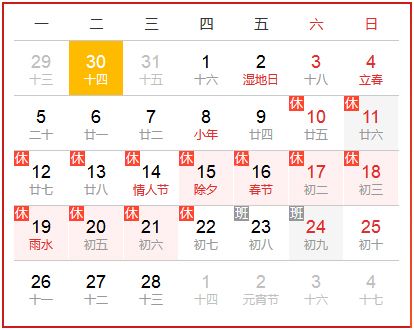 根据国家放假安排,2018年春节北京平和放假安排如下: