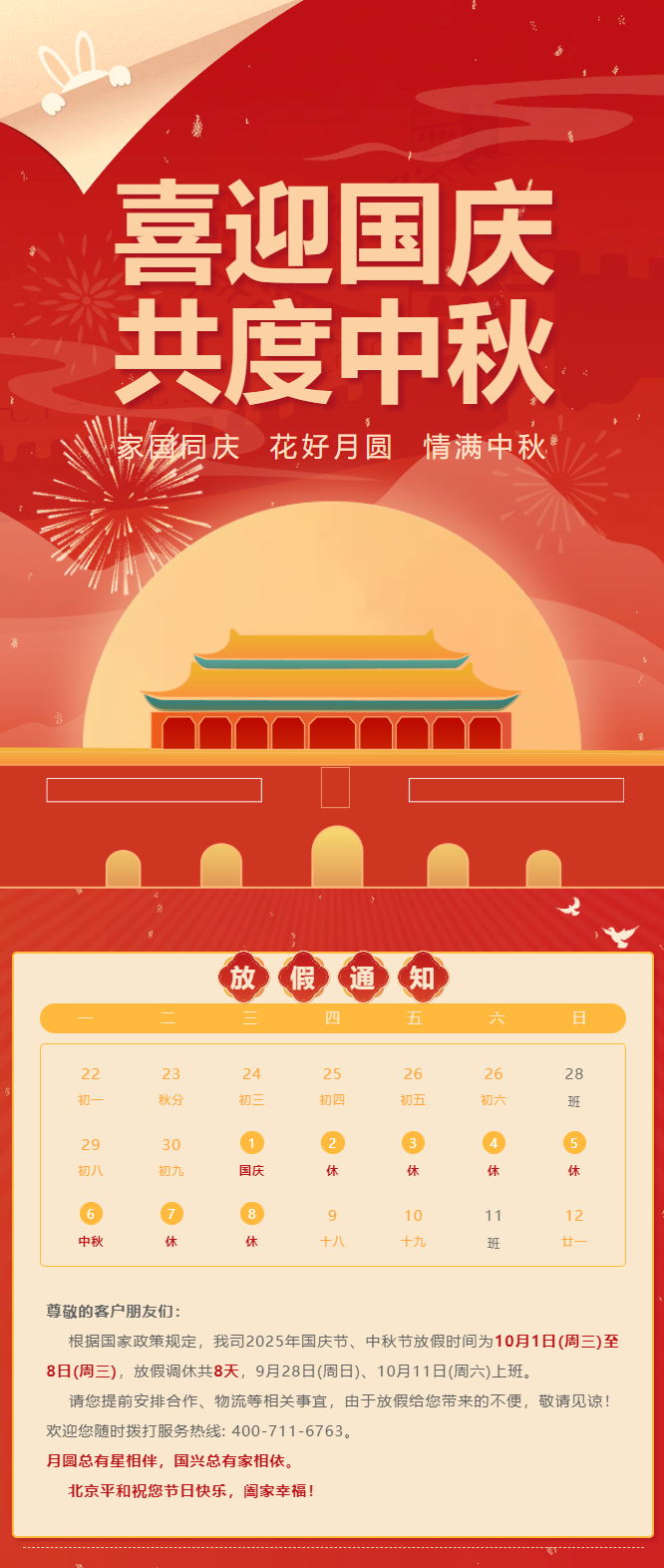 但愿人长久,佳节共团圆 | 北京平和2025国庆、中秋放假通知