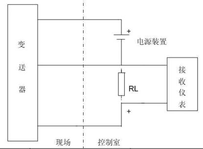 (输入接收仪表的是电流信号,如将电阻RL并联接入时,则接收的就是电压信号了。)
